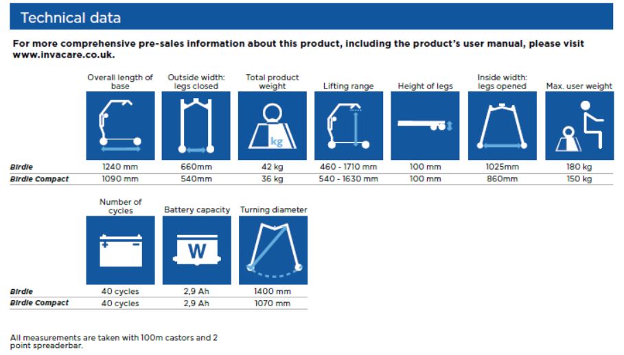 The Birdie Hoist provides maximum space and a truly comfortable lift for transfer to or from beds, chairs or even the floor. Ideal for use at home, residential care environments or hospitals. Easily folded or unfolded without use of tools.  Max user weight of 180kg. Also available in a Compact Version.